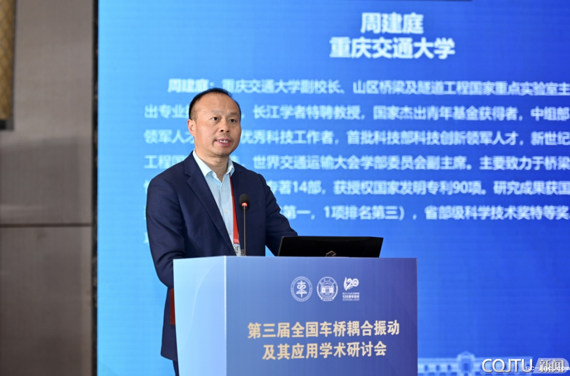 周建庭教授应邀作题为“现代监测技术与车桥动力学在大跨轨道桥评估中的融合应用”大会主旨报告。报告从基于车-桥动力学的轨道桥健康监测技术、基于状态监测的轨道桥车桥动态评估方法、基于监测信息的轨道桥实用安全评估技术等方面介绍了桥梁健康监测技术与车-桥动力学理论的融合应用,为大跨度桥梁的安全运维提供了理论与技术支撑。