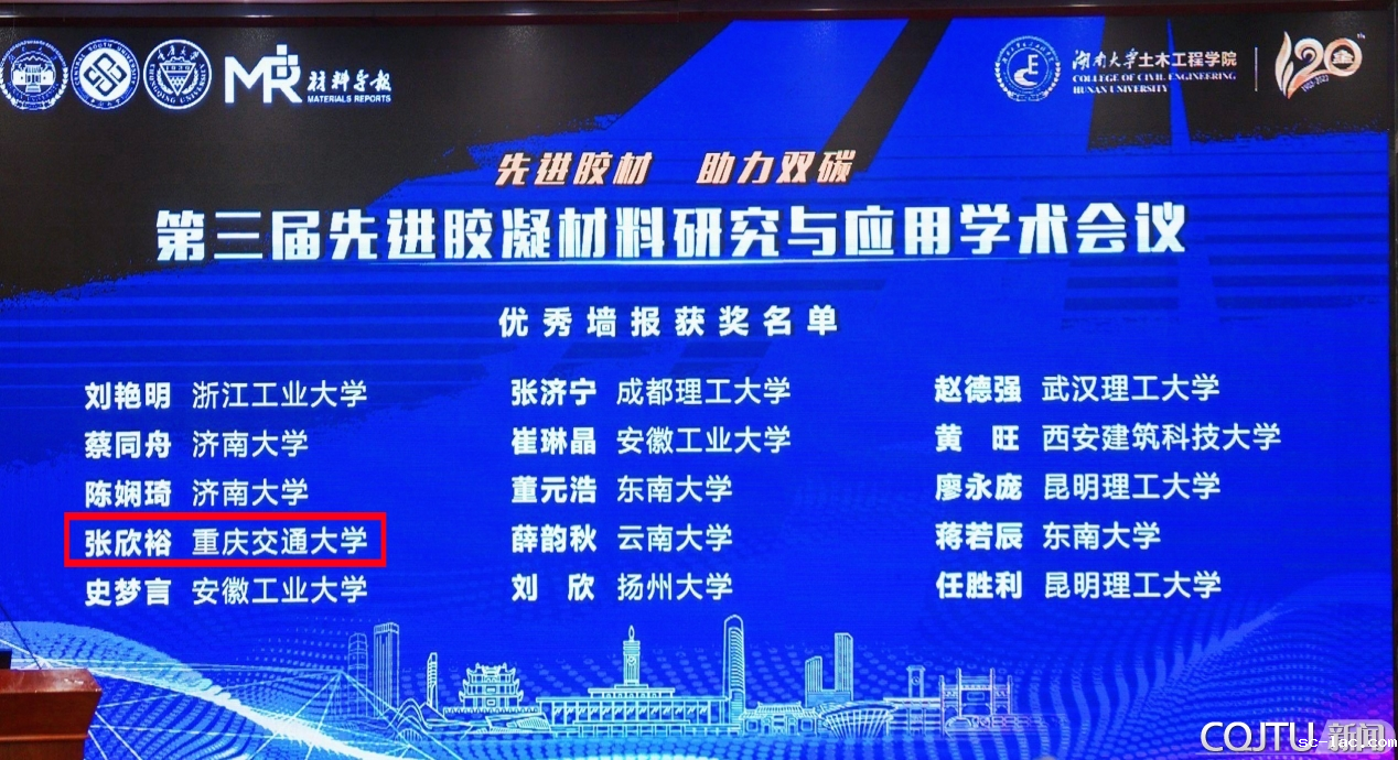 我校土木学院2022级硕士研究生张欣裕(导师:罗祺副教授)通过墙报展示了该团队近期在胶凝材料领域的研究成果,经会议专家评选,从众多参会墙报中脱颖而出,获得优秀墙报奖。大会期间,我校教授与参会专家代表就胶凝材料研究与应用的热点问题和未来发展趋势进行了广泛深入的讨论和交流,积极宣传和展示了我校在先进胶凝材料领域的研究基础和取得的重要成果,提升了我校在该研究领域的知名度。