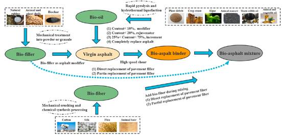 该论文讨论了应对全球气候危机并帮助实现碳中和,使用生物质材料完全或部分替代石油产品和不可再生资源有望成为一种普遍的解决方案,并根据生物质材料在路面工程中的应用场景对其分为三类:生物油、生物纤维和生物填料,总结了各自的制备方法和特点,对生物质沥青混合料的路面性能进行了分析,并通过计算发现,生物沥青的性价比具有超越传统沥青的潜力,同时具有显著的环境效益和发展潜力。研究成果将为生物质材料在路面工程中的合理开发与应用提供科学依据与经验启示。