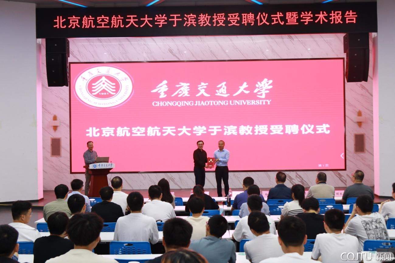 报告会前,老伟德网上娱乐副校长周建庭教授代表学校向于滨教授颁发了特聘教授聘书,并感谢其对我校交通工程学科专业建设的大力支持。