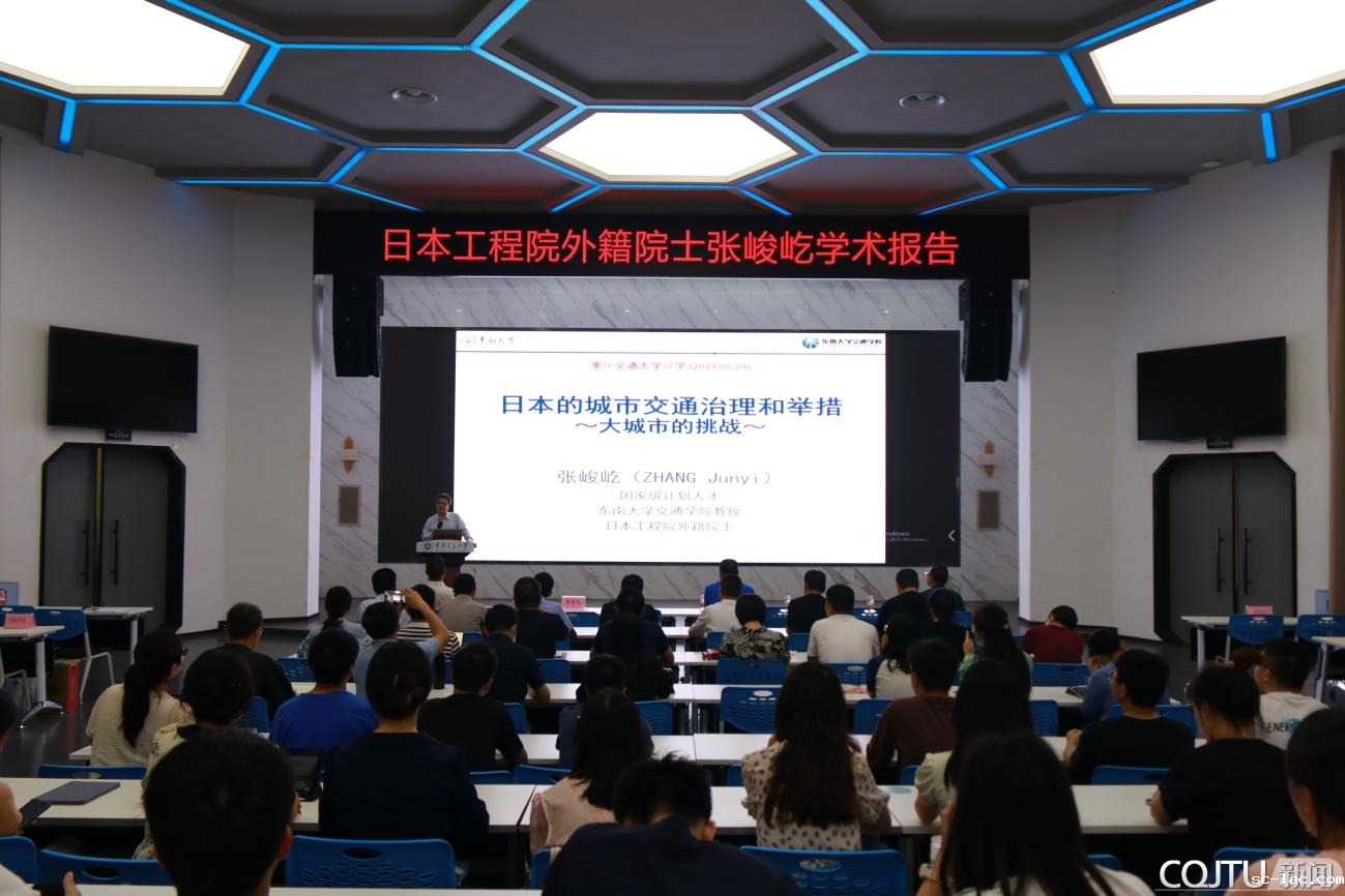 2023年5月30日下午,交通运输学院邀请东南大学教授、日本工程院外籍院士张峻屹教授在南岸校区第一教学楼智能交通大数据中心作了题为“日本的城市交通治理经验和举措”的专题学术报告。重庆市公安局交通巡逻警察总队相关负责人、交通运输学院副院长(主持工作)刘唐志教授及部分专家教授与师生代表约150人参加了本次学术报告会。报告会由刘唐志教授主持。
