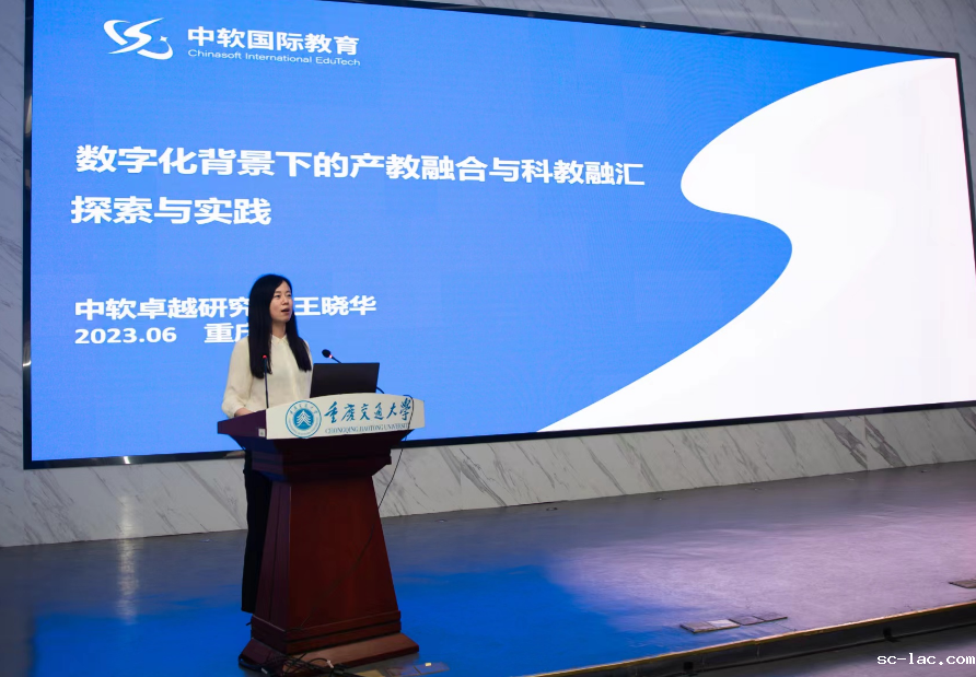 中软国际副总裁王晓华就数字化背景下产教融合及科教融汇情况作报告,从教育教学数字化转型、培养创新人才等方面分享了中软国际产教融合、科教融汇的经验交流。