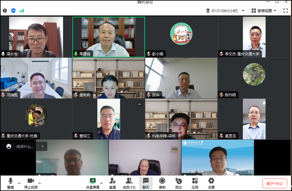上午9点30分,会议以腾讯会议线上形式进行。研究生院、科技处、产学研处、工程产业院、信息化中心、期刊社、校科协、生态环境中心、机电学院、信息学院、建规学院、智慧城市学院等单位全体班子成员线上参会,会议由周建庭副校长主持。