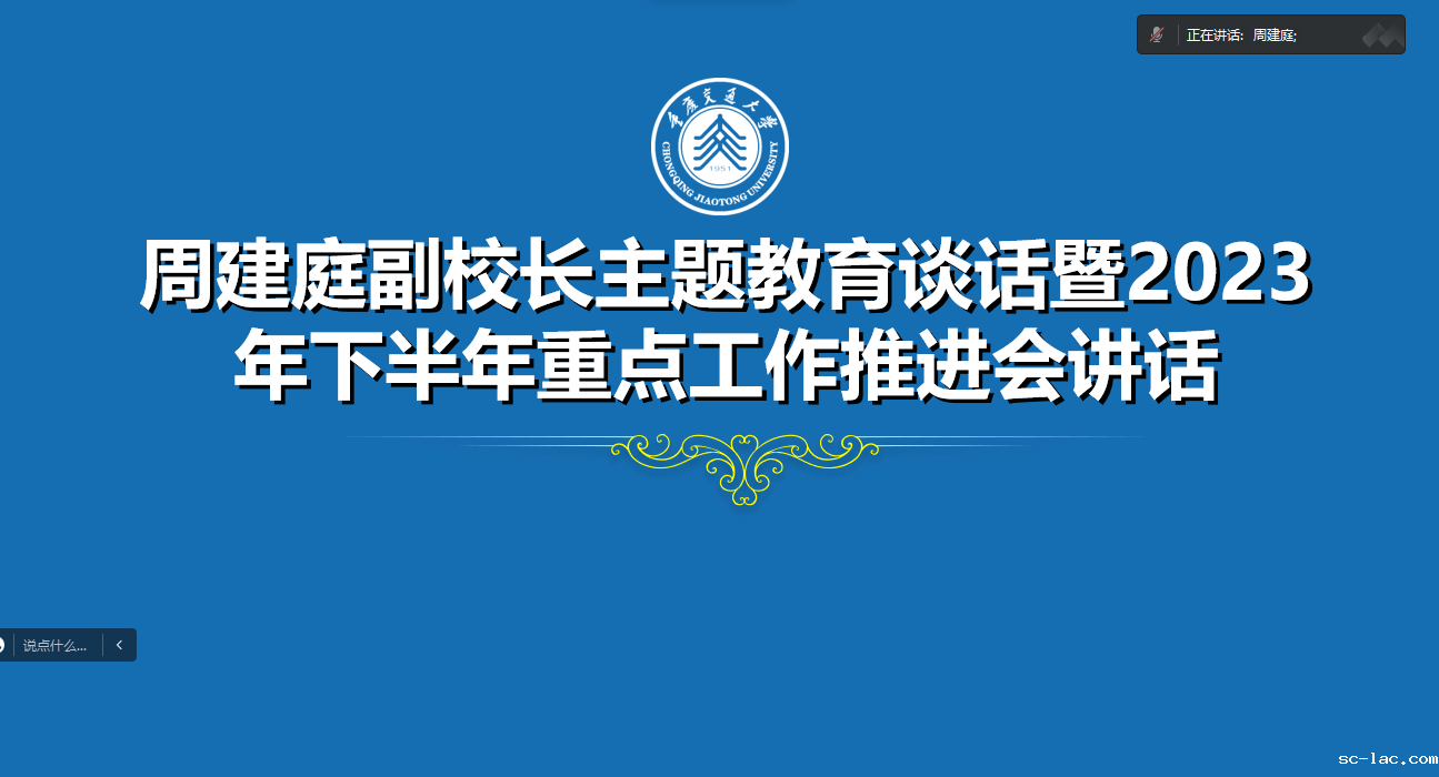 周建庭副校长一一对各单位主要负责人发言进行了点评,并做了讲话。周建庭强调,作为学校核心部门单位,暑假以来,在学校党政统一部署下,各单位领导班子信心满满、干劲十足,围绕年度重点工作目标,结合主题教育检视整改和“十四五”中期评估发现的短板弱项,跑业务、抓项目、访企业、忙充电,以历史主动助推学校事业蓬勃发展,取得成绩值得肯定。周建庭副校长就各单位当前党建与事业发展、2023年下半年重点工作强调了三点意见。