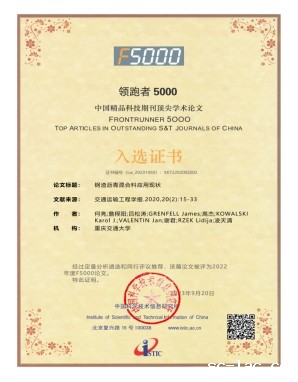 近日,科技部中国科技信息研究所发布了2022年度“领跑者5000——中国精品科技期刊顶尖学术论文(Frontrunner 5000,简称F5000)”获奖名单。土木工程学院何亮教授团队发表在2020年第2期《交通运输工程学报》上的论文“钢渣沥青混合料应用现状”获此殊荣,目前引用量高达69次。该论文为何亮教授与国家杰青长沙理工大学吕松涛教授、澳洲国家交通研究组织(NTRO)路面首席科学家James GRENFELL博士等国内外学者合作完成。https://transport.chd.edu.cn/cn/article/doi/10.19818/j.cnki.1671-1637.2020.02.002