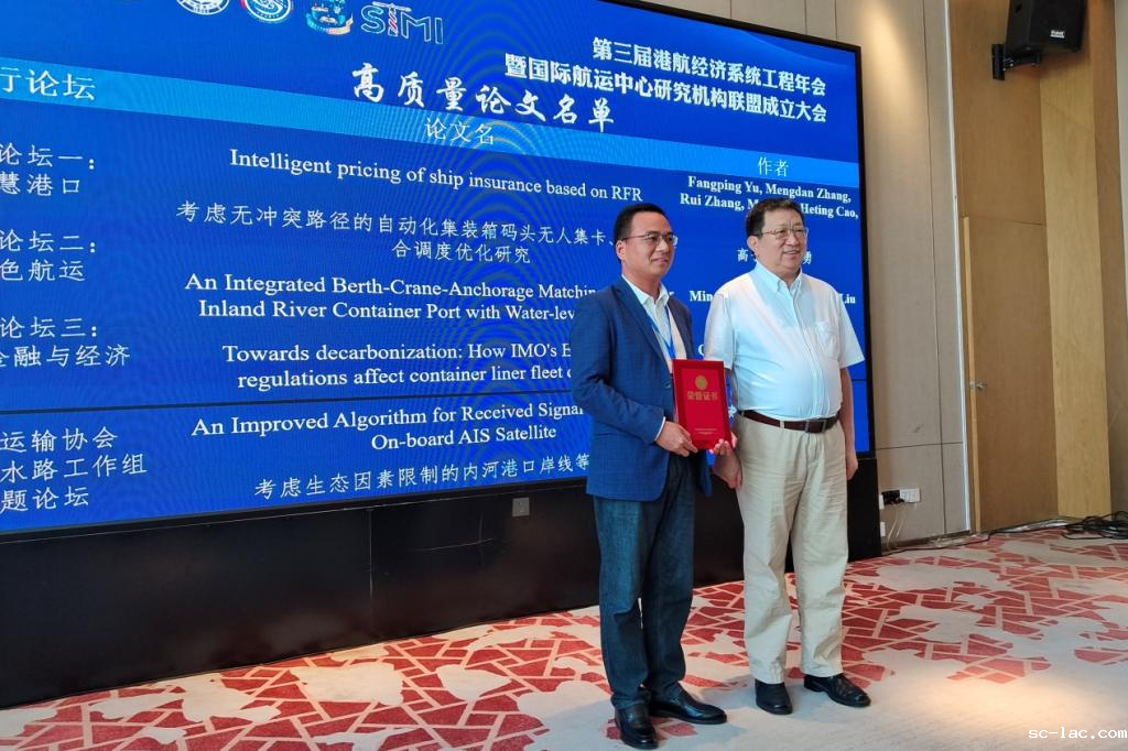 11月17日至19日,由中国系统工程学会、中国系统工程学会港航经济系统工程专业委员会、大连海事大学联合主办的第三届港航经济系统工程年会暨国际航运中心研究机构联盟成立大会在深圳举办。本届大会以打造”数智·创新·融合·绿色”的港航供应链为主题,安排了10场主旨报告和4个平行论坛,同步召开了中国国际航运中心研究机构联盟成立大会和中国系统工程学会港航经济系统工程专业委员会换届大会,来自全国港航物流类相关高校、科研院所和企事业单位的100多位专家学者与会。我校交通运输学院院长助理、交通管理系主任蒋军副教授应邀参会,当选新一届全国港航经济系统工程专业委员会委员,并在青科委水路工作组专题论坛上做学术报告,且获评高质量论文。