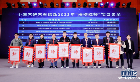 开幕式上中国汽车工程研究院股份有限公司举行了汽车指数2023年“揭榜挂帅”项目揭榜及授旗仪式。詹振飞教授申报的项目“基于试验仿真和人工智能融合算法的主被动安全测评方法与权重系数研究”入选揭榜项目并授旗。