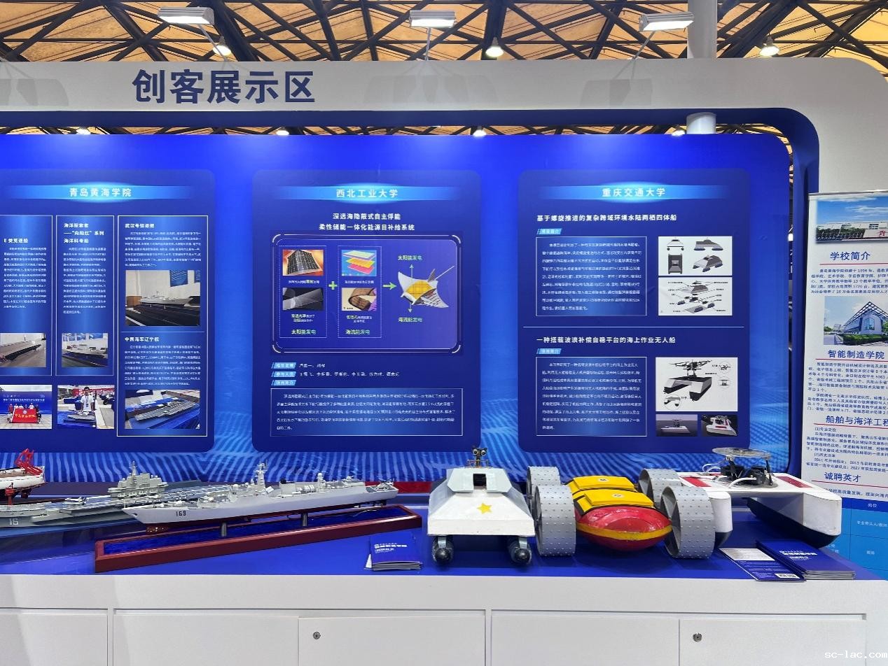 本次海事展是老伟德网上娱乐学生接触行业前沿、开拓眼界、激发创新创业热情的大平台。展会期间,我校作品受到了嘉宾的广泛关注,其中,代艾鸿、张坤、郭赢锘、王卓凯、彭媛团队的《一种搭载波浪补偿自稳平台的海上作业无人船》,李家鑫、宋宗硕、代蓥笛、王萌、黄本渝团队的《基于螺旋推进的复杂跨域环境水陆两栖四体船》吸引了诸多嘉宾驻足了解。这些科创成果在海事展上引发广泛关注,也展示了几代交大人为推动我国船舶海洋工程领域发展做出的努力。
