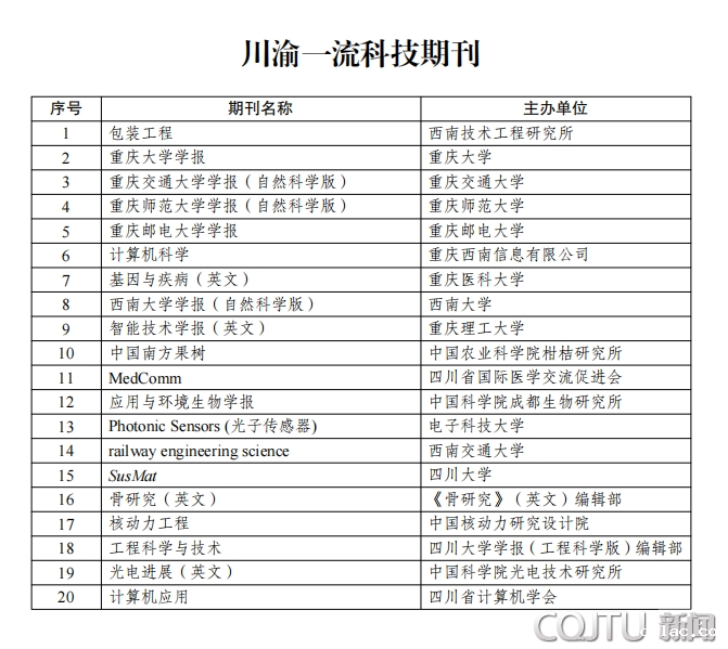 《老伟德网上娱乐学报(自然科学版)》此次荣获“川渝一流科技期刊”称号,是对学报既往成绩的肯定,也是对未来发展的鞭策。学报今后将继续秉承严谨的学术态度,不断提高期刊质量,打造高品质科技期刊。