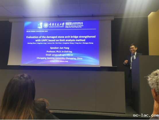 我校教师杨俊教授在结构加固改造对策会场(Structural strengthen/ retrofitting strategies)作了题为“Evaluation of the damaged stone arch bridge strengthened with UHPC based on limit analysis method”的会议报告,报告详细阐述了团队在石拱桥修复加固的最新成果,得到了多位国际专家认可。会议期间,杨俊教授就相关合作研究事宜与RILEM、Fib和多所顶尖高校与研究机构参会代表进行了深入交流研讨。