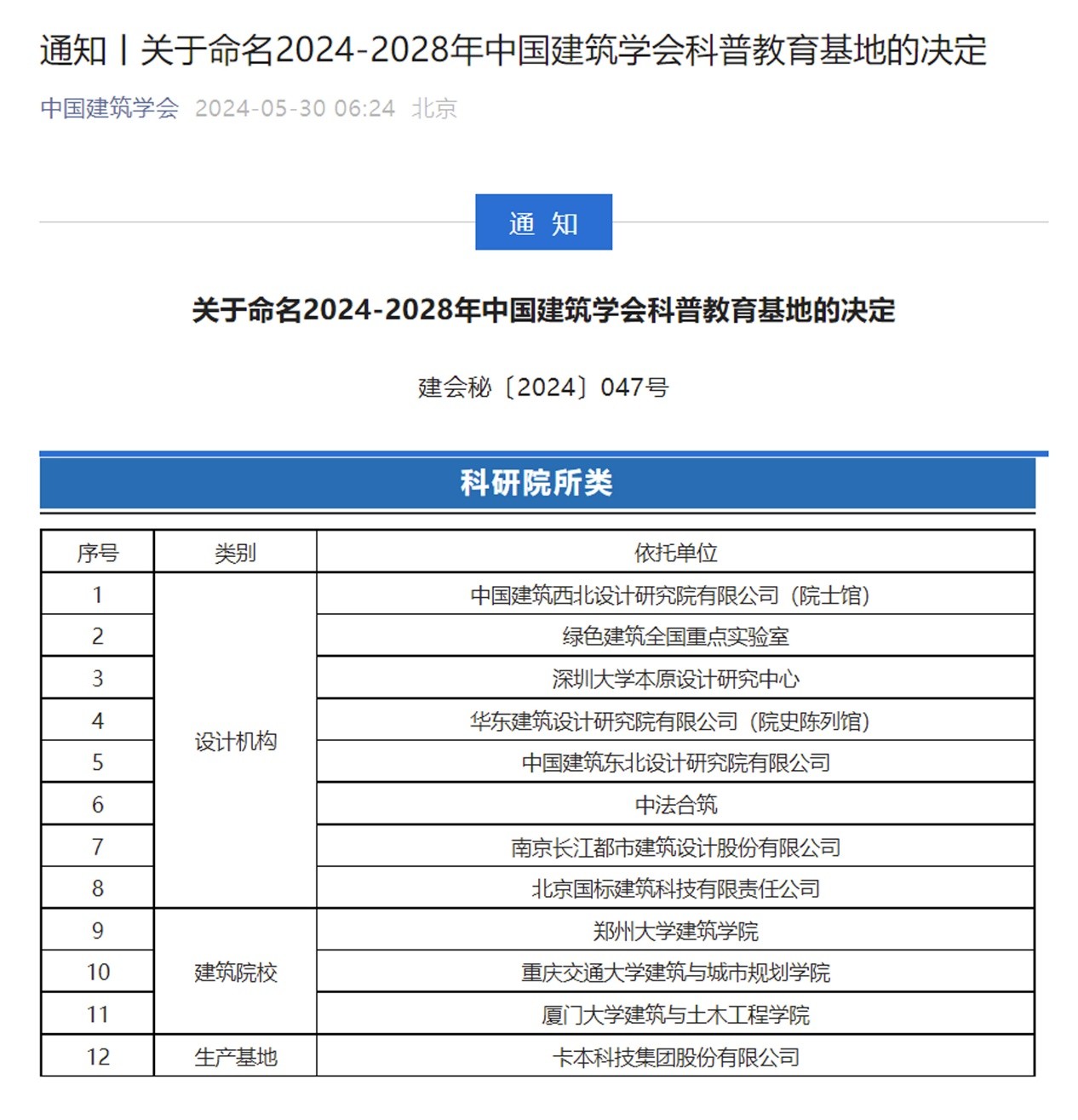 为贯彻落实《全民科学素质行动规划纲要(2021—2035年)》,团结引领广大科技工作者和科普工作者,提升社会化科普工作能力,中国建筑学会于2024年5月21日在北京召开了2024-2028年度全国范围建筑科普教育基地认定工作。经过来自建筑高校、设计科研等单位的科普工作委员会委员评审,老伟德网上娱乐建筑与城市规划学院获批2024-2028年中国建筑学会科普教育基地。