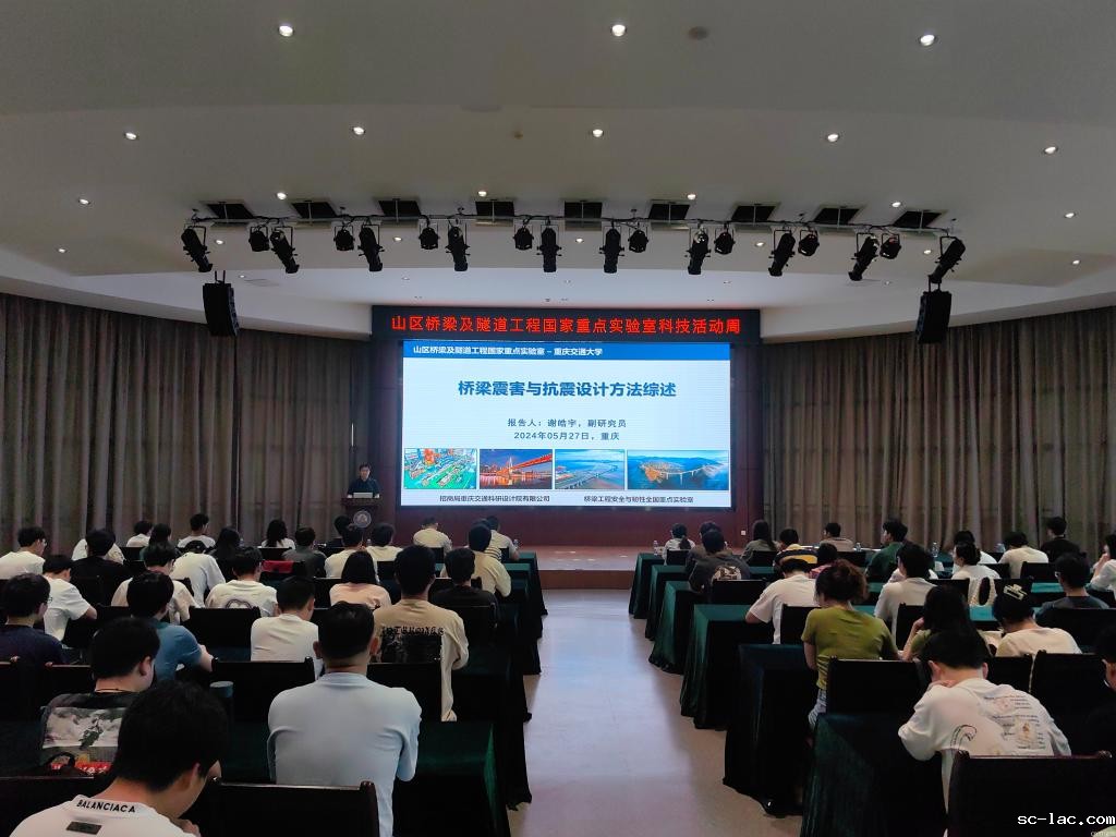 在南岸校区分会场,特邀国际著名超级并行计算专家、海南大学土木建筑工程学院教授、日本工程院外籍院士董勤喜院士作题为《超算赋能土木交叉学科创新发展》的报告;在科学城校区分会场,特邀长安大学学者朱谭谭老师作题为《基于地热利用的寒区隧道排水沟冻害防治理论与关键技术》的报告,招商局重庆交通科研设计院有限公司技术骨干谢皓宇副研究员作题为《桥梁震害与抗震设计方法综述》的报告,同济大学桥梁工程系徐骁青教授作题为《GFRP筋UHPC构件力学性能研究进展》的报告,东南大学戚家南副教授作题为《低碳长寿命UHPC桥梁“材料-结构”基础理论与体系创新》的报告,重庆科技大学学者赵爽老师作题为《输电线路、高耸结构和桥梁的风振分析与抗风设计》的报告,西南石油大学郑贺斌副教授作题为《土质地层小净距隧道暗挖施工围岩的稳定特性》的报告。几场学术盛宴紧密呼应科技活动周主题,介绍桥隧工程在数据智能方面的前沿热点、发展趋势和存在挑战,特别对数据智能与管理交叉的研究与应用进行探索,丰富展现中国共产党领导下我国科技事业发展取得的辉煌成就。