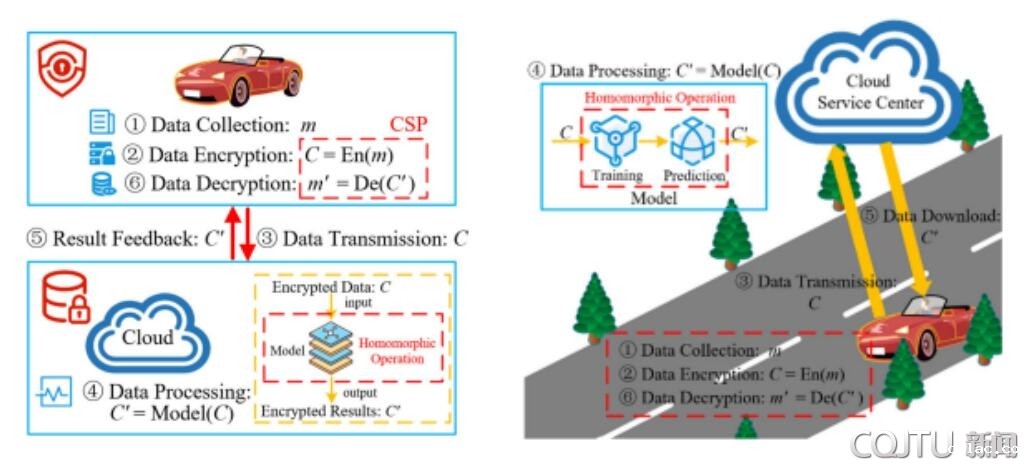 该成果基于所在团队在国际上首先提出的“零信任+智能网联车群”全信息链驱动的安全管控新架构,面向零信任架构下智能网联车群具备异构性和动态拓扑结构特性,传统处理方法和有限的车载设备能力给数据安全传输处理带来的计算效率低下、搜索速度慢等挑战,提出并构建了一种轻量级的全同态加密算法,解决了智能网联车内外数据传输和处理中的隐私保护问题。该方法的主要思想是将基于共轭搜索问题进行安全性规约,并同步架构加密数据处理模块,结合神经网络实现了交通数据的分类加密和授权搜索,实现了智能网联车群数据安全管控中安全性能等效,更适合实时和大规模的车联网场景,在保持同精度的同时,搜索和计算效率大幅提升,可有效缓解车联网中使用同态加密带来的效率限制。