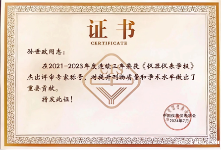会议期间,中国仪器仪表学会为表彰专家学者在学术交流、论文评审等学术服务中所做的贡献,对连续三年获评《仪器仪表学报》的“杰出评审专家”进行了大会授奖和颁发证书。据悉,《仪器仪表学报》是中国科学技术协会主管、中国仪器仪表学会主办的高水平学术性刊物,总被引频次、影响因子和综合评分在仪器仪表类期刊中位居第一,入选“中国科技期刊卓越行动计划”,已被美国工程索引(Engineering Index)、美国化学文摘(CA)、英国科学文摘(INSPEC)、俄罗斯文摘杂志(РЖ)、中国学术期刊综合评价数据库CAJCED、中文核心期刊、中国科学引文数据库、中国科技论文与引文数据库(CSTPCD)等国内外重要检索系统收录。