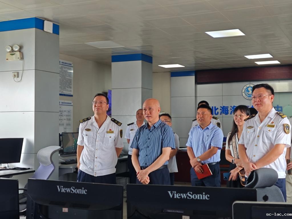 当日下午,调研组走访广西海事局。在广西海事局党组成员、副局长宋国锋的陪同下,局指挥中心毕占新副主任对北港物流数字化运营平台、DCS数字调度系统、码头监控系统等方面进行了详细介绍。双方就智慧海事平台中存在的信息监管、实时信息传输等方面的问题进行深入探讨,宋国锋副局长介绍了广西海事局在保障广西口岸高效、安全运行等方面的具体工作内容和情况,与会人员就贯彻和执行国家水上交通安全方针,航海保障、海事监管等方面如何高效协同助力西部陆海新通道的物流效率提升进行了深入探讨。