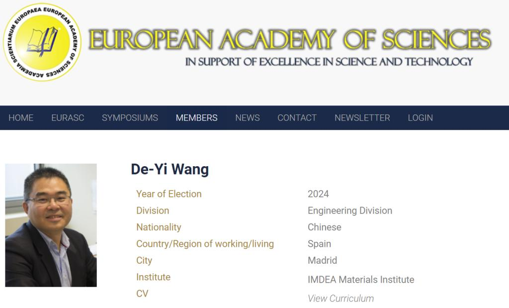近日,欧洲科学院(European Academy of Sciences,简称EurASc)公布了2024年院士增选结果,我校特聘教授王德义先生当选为欧洲科学院工程学部院士。