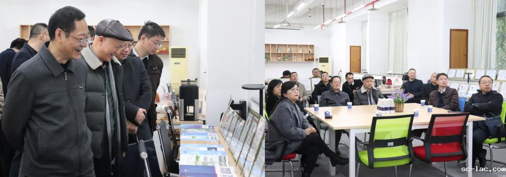 现场考察分两个阶段进行。龙川副主席一行首先对“陆海通创新发展研究院”进行了实地考察。经管学院李豪副院长对新型智库陆海通创新发展研究院建设的场地情况进行了介绍,龙川副主席一行查看了新型智库建设前期系列成果,研究院石超锋教授、万宇副教授、李豪教授和陈坚教授分别介绍了研究院取得的代表性咨政成果。