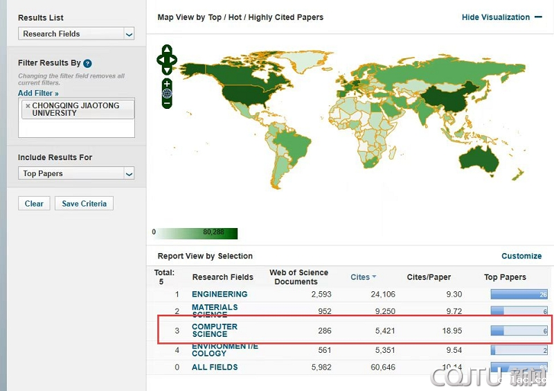 根据此次最新公布的ESI数据显示,本期我校计算机科学学科总发文286篇,总被引用5421次,高影响力论文(Top Papers)6篇,在该学科领域前1%的835个机构中,排名第825位。
