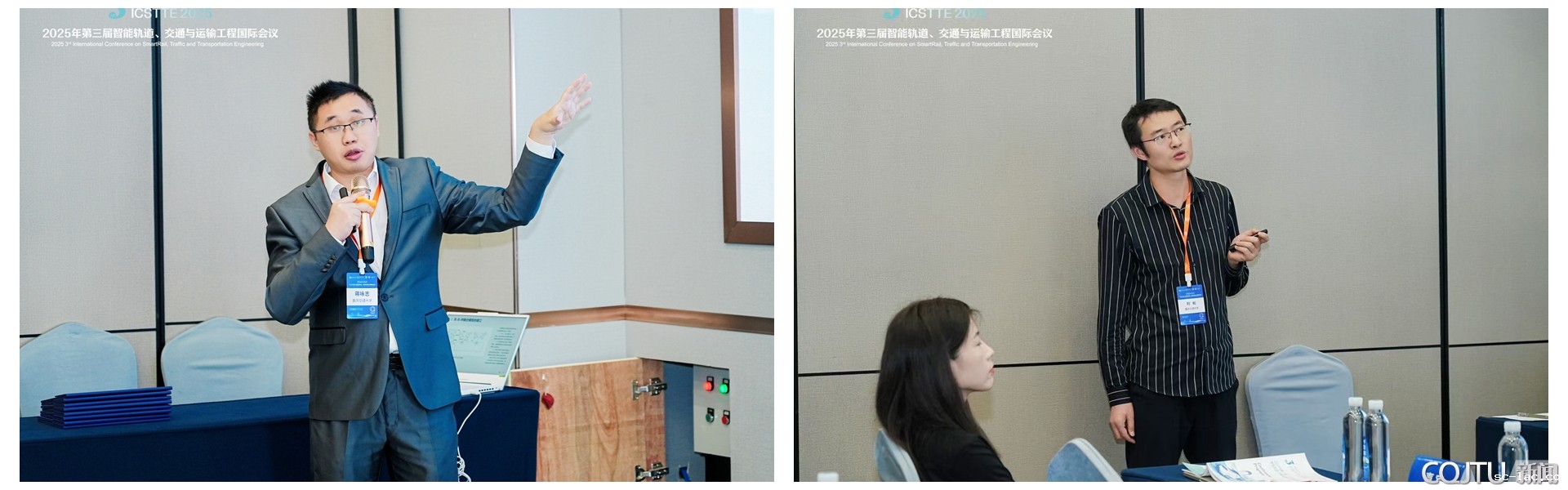 机电与车辆工程学院牵头组织“轨道交通车辆-轨道-桥梁系统结构设计、动力学、强度与控制关键技术”分会场,蒋咏志副教授作“Dynamic response and stability assessment of suspended monorail in cross wind curve condition” 特邀报告,深入解析跨风曲线工况下悬挂式单轨的动态响应与稳定性,为轨道交通安全运营提供关键技术参考,引发与会专家的热烈讨论。交通运输学院综合运输系统智能优化研究所副所长刘松博士后受邀在"新一代信息技术驱动的多式联运创新范式"分会场作“Optimization of Reliable Routes for Multimodal Transport of Emergency Supplies Under Dual Uncertainty”特邀报告,针对双重不确定性下应急物资多式联运可靠路径优化问题提出创新解决方案,为多式联运领域技术突破提供新思路。两位青年学者的汇报体现了我校以“交通+”为核心的学科交叉特色。