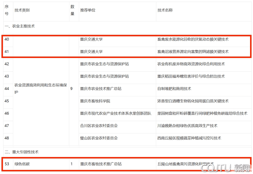 值得关注的是,作为重庆市生猪产业技术体系创新团队核心单位,我校联合重庆市畜牧技术推广总站等多方力量,共同构建的“丘陵山地畜禽粪污资源化利用”整体解决方案,同步入选重庆市2026年度重大引领性技术(序号53)。该方案为成渝地区双城经济圈农业面源污染防控提供了可复制、可推广的“交大样板”,进一步彰显了学校服务区域绿色发展的责任与担当。