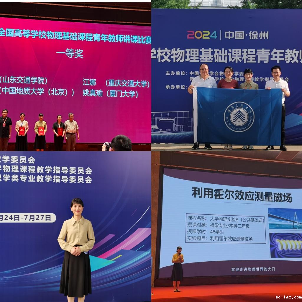 7月24日,“2024年全国高等学校物理基础课程青年教师讲课比赛(实验)”在中国矿业大学成功举行。此次活动旨在深化物理教育教学研究,提升青年教师教学水平。经过省市预赛和地区复赛,全国6大赛区的21名优秀青年教师进入了全国决赛。我校材料科学与工程学院江娜老师经过决赛的两轮激烈角逐斩获全国一等奖(全国仅4名)。这一成绩是重庆市物理基础课程青年教师取得的历史最好成绩,充分展现了我校青年教师的教学水平与风采。