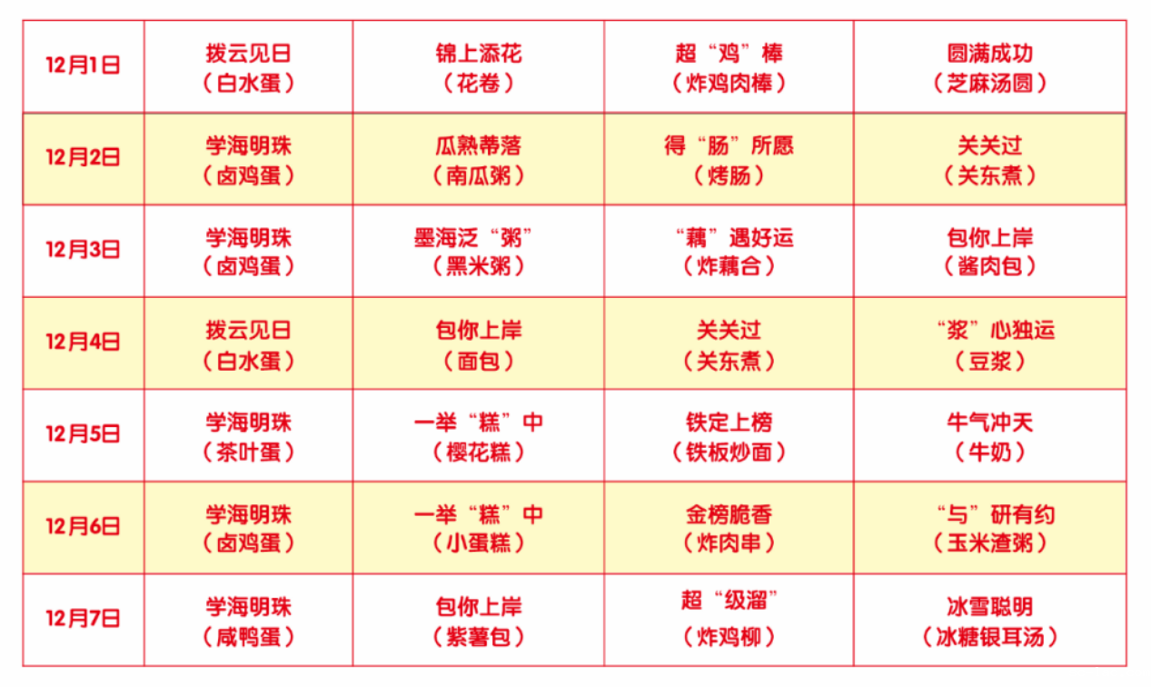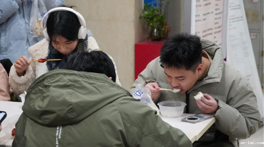 在学校为同学们专门设置的加餐区,同学们一块儿吃上了有着“拨云见日、锦上添花、圆满成功”等美好寓意的爱心宵夜——芝麻汤圆、白水蛋、花卷,在一片欢声笑语中,大家共同享受着这一凝结着爱与温暖的幸福时刻。