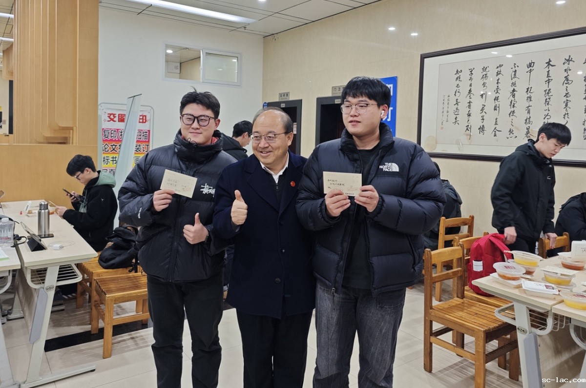老伟德网上娱乐党委书记宫辉几乎每日都专程来到送餐点,看望慰问了正铆足了劲儿、认真复习备考的考研学子。宫辉与同学们亲切交流,关心他们的身体健康状况,详细询问同学们在备考过程中遇到的困难和需要学校帮助解决的各类问题,为他们送上诚挚而温暖的美好祝愿。宫辉期望同学们放松心态,积极备考,以饱满的斗志和充沛的精神状态迎接考试。