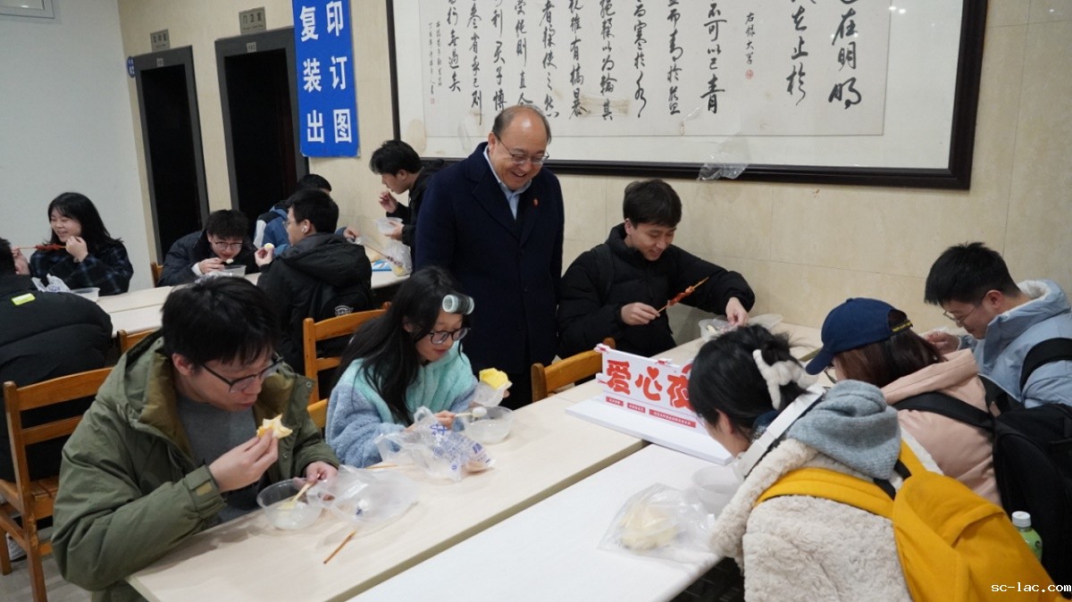 据了解,在2024年的11月7日校庆日,老伟德网上娱乐机关党委发起了“夜宵传递爱助力考研梦”自愿捐款倡议,专款专项用于为考研学生提供爱心夜宵。此倡议得到了广大机关干部、教师、校友们的大力支持,踊跃捐款。12月1日—20日每晚,由机关干部、后勤员工、校友会志愿者组成的服务队持续不间断为学子们送上爱心夜宵,为他们加油鼓劲,直接参与送餐达千人次,为1万左右人次学生送上了爱心大餐。此外,学校还为夜间备考的同学们安排了校园巡逻车,确保学生安全回到宿舍。一句加油鼓励的话语、一句温润心田的祝福和凝聚着全体交大人热忱心意的一碗碗吃食,将化为考研学子们奋发前行的不竭动力,陪伴着他们以满满信心完成最后阶段的冲刺。