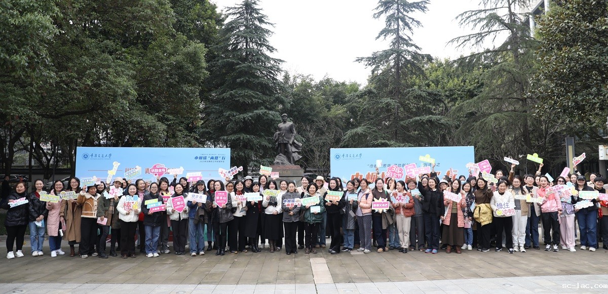 校工会主席刘一华对健步走活动进行了说明。本次活动作为“巾帼绽芳华·建功新时代”女教职工系列活动之一,设计青藏、川藏两条路线,将校园地标与”两路”重要关卡深度融合,既有对健康生活的倡导,也是“两路”精神血脉的赓续传承。校党委常委、纪委书记钟建川在穰明德老校长雕像前致开幕辞,她首先代表学校党政向广大女同胞们送上节日祝福,重温七十多年前穰明德校长“誓为前路坦途、甘当铺路石头”的铿锵誓言,回顾学校与“两路”建设同频共振的办学历程,并希望全校女教职工积极发挥“半边天”作用,在学校建设发展中绽放巾帼风采、展现巾帼力量。