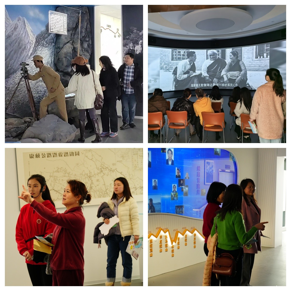 活动开始后,老师们沿着“两路”模拟路线,一边欣赏校园美丽景色,一边在“二郎山”“天下第一道班”“拉萨”等地点打卡留念。在“两路”精神育人园,老师们重温筑路先驱"让高山低头、叫河水让路"的豪言壮语,切身感受"一不怕苦、二不怕死,顽强拼搏、甘当路石"的精神传承,在展览馆内历史再现与馆外轻轨飞驰的视觉冲击下,更深切体会到了“明德行远·交通天下”的寓意深远。