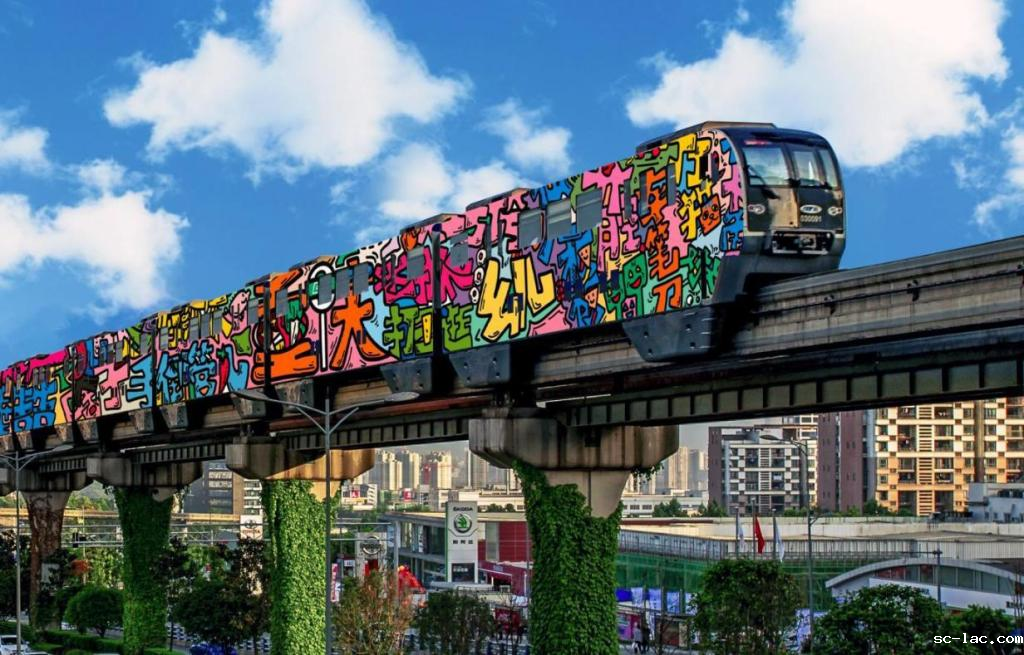 以“未来重庆”为主题设计的轻轨车身涂装效果图