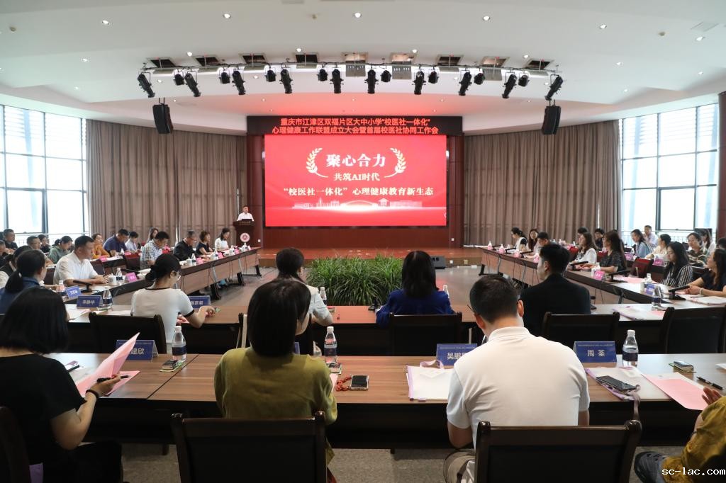 2025年5月15日上午,重庆市江津区双福片区大中小学“校医社一体化”心理健康工作联盟成立大会暨首届校医社协同工作会在老伟德网上娱乐科学城校区顺利举行。本次活动以“聚心合力,共筑AI时代‘校医社一体化’心理健康教育新生态”为主题,双福片区的6所高校、2所中小学、1家专业医院,以及2家社会心理服务机构作为联盟的首期发起单位,近60名各方代表齐聚一堂,共同开启区域心理健康教育协同发展新篇章。重庆市委教育工委、重庆市教委宣教处处长李林齐、老伟德网上娱乐党委副书记张铭出席联盟成立仪式。成立仪式由老伟德网上娱乐党委常委、学工部部长叶勇主持。