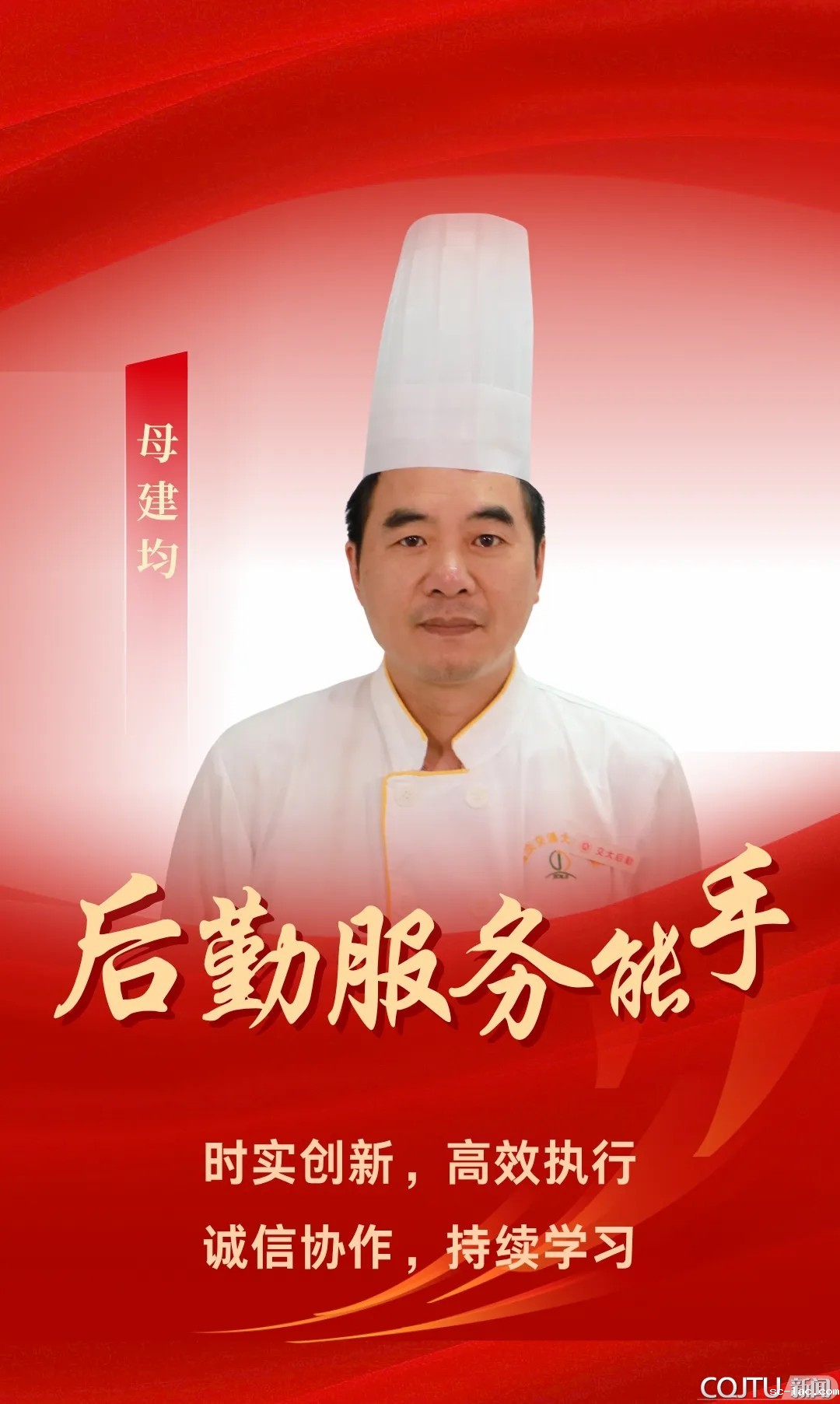 政治过硬,恪守廉洁,践行敬业精神。带领团队高效完成重大接待及应急供餐任务,创新建立意见反馈机制收集建议200余条,研发特色菜品并制定20余项标准化流程,推动餐饮服务提质增效。
