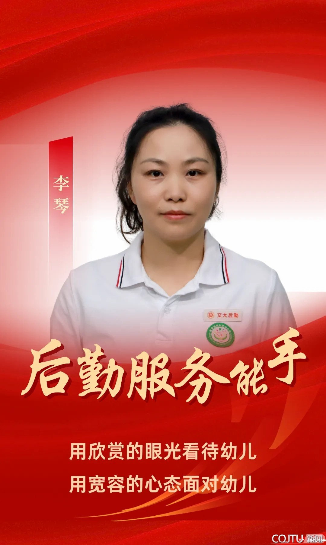 深耕幼教一线多年,以专业与温情为幼儿筑牢成长港湾,既做幼儿成长引路人,也是温暖守护者,用实际行动诠释后勤服务的责任与温度。