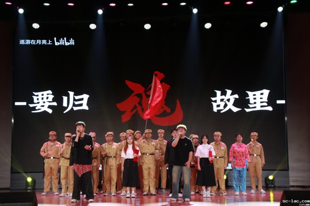 艺术设计学院设计学类2401班团支部用影子剧《觉醒青年》勾勒1915—1921年青年觉醒历程,以光影变幻重现新文化运动至建党峥嵘岁月。经济与管理学院知识产权专业2401班团支部的话剧《山河脊梁,青春征途》重现惠通桥保卫战的壮烈,诵读港珠澳大桥建设者誓言时,历史与当下的建设者隔空击掌,彰显“脊梁精神”的永恒传承。建筑与城市规划学院建筑类2405班团支部的沉浸式朗诵《不朽》,节目通过声光交织的舞台,带领观众重回抗战岁月,以铿锵诵读与情景演绎再现英雄儿女的壮烈抉择,传递“英雄精神永不朽”的信念。土木工程学院生态力学2401班团支部紧随其后,以情景剧《筑路精神永传承》聚焦川藏公路建设现场,再现筑路军民“一不怕苦、二不怕死”的豪情。新时代青年激昂宣誓“以智能建造续写强国篇章”,历史与未来的对话震撼人心。