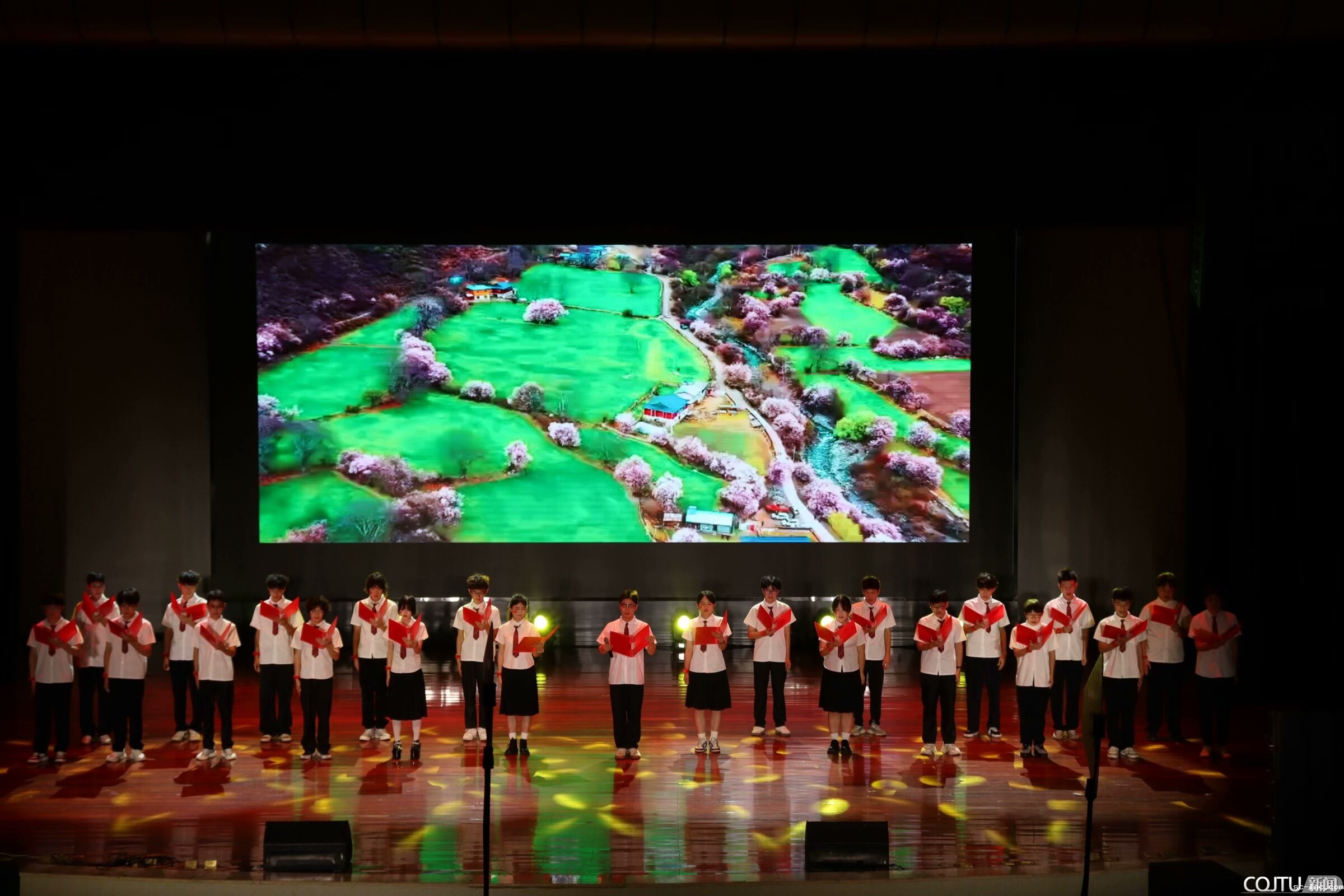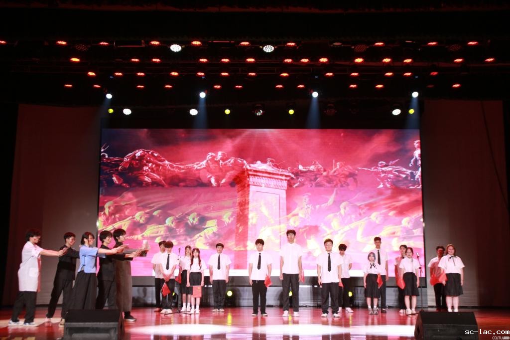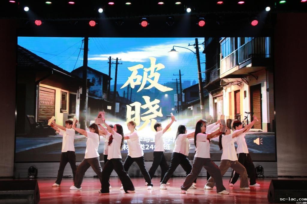 交通运输学院交运类2407班团支部以话剧朗诵《星火长河·青春》致敬五四精神,青年学子“摔笔怒斥卖国行径”的呐喊与“科学民主”的朗诵交织,将全场氛围推向高潮。数学与统计学院数学类2402班团支部以四幕情景剧《永不熄灭的星火》串联抗战史诗,尾声的舞蹈《党旗飘扬的方向》以肢体语言演绎信仰的力量,如星火燎原般点燃观众热血。机电与车辆工程学院智能制造专业2401班团支部以《山河的回响》为题,融合话剧、朗诵与说唱等形式开展红色汇演。通过再现抗战烽火、深情追忆先烈,以青春说唱宣誓"永远跟党走",多形式展现青年学子传承红色基因、听党话、跟党走的信念。材料科学与工程学院材料类2403班团支部的综合性节目《破晓》惊艳全场,舞蹈再现《南京条约》签订时的屈辱,朗诵则串联“五四运动”至新时代崛起,最终千人齐唱《国际歌》引发共鸣。