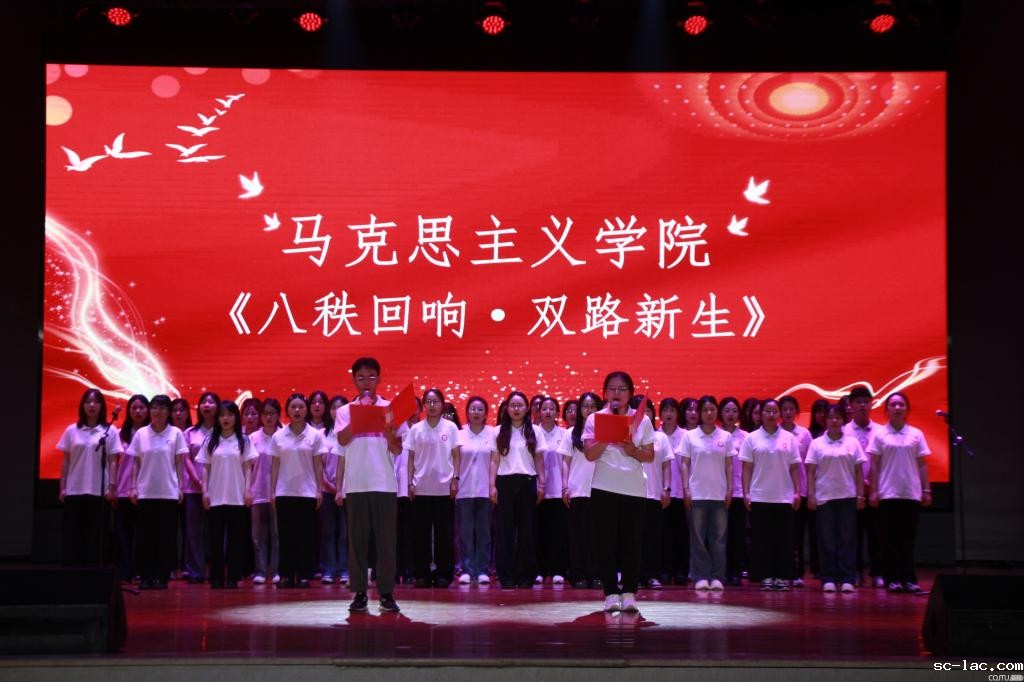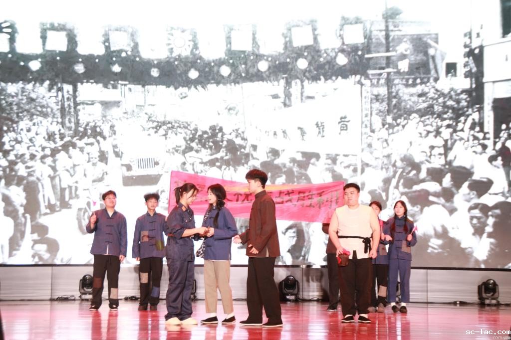 旅游与传媒学院旅游管理2404班团支部的穿越剧《时光里的烽火玫瑰》,通过现代少女与抗战女性的跨时空相遇,讴歌女性“柔肩担道义”的伟力;航空学院飞行器动力工程2401班团支部以朗诵《青春向国,梦启新程》描绘青年投身乡村振兴、科技攻坚的壮志,誓言“以青春托举中国航天梦”。马克思主义学院马克思主义理论专业2401班团支部通过原创朗诵诗《八秩回响·双路新生》与数字水墨长卷,再现抗日英烈壮举,二重唱《歌唱动荡的青春》以光影呈现筑路悲壮史。外国语学院外国语言文学类2403班团支部创新演绎《巴渝译站》,融合方言RAP与沉浸式舞美,塑造译电员林雪吞密毁稿的忠魂形象,展现跨越时空的精神。