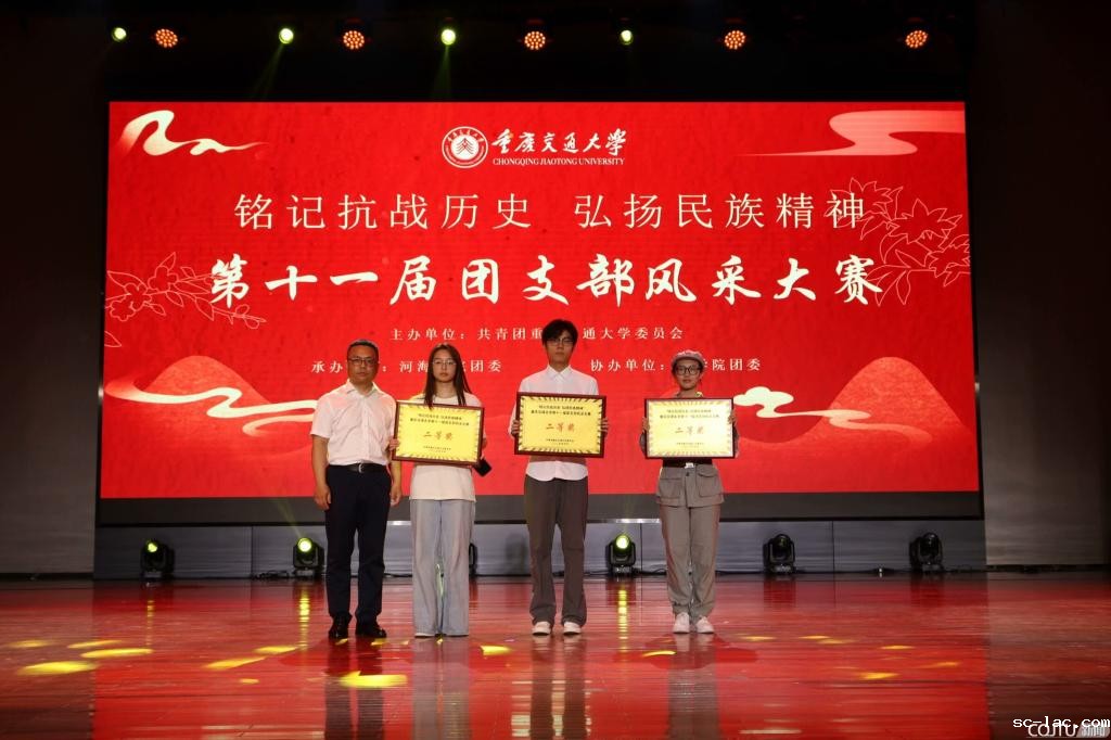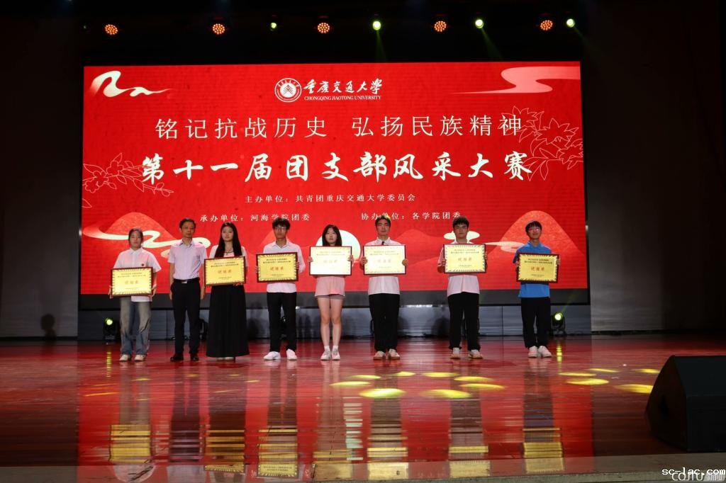 航运学院船舶与海洋工程2402班团支部的《巴渝烽火,青春回响》融入应急棍表演与爱国Rap,以“刚柔并济”的艺术形式致敬重庆大轰炸中的不屈之魂。信息科学与工程学院计算机科学与技术专业2402班团支部创新采用影子剧《觉醒青年》,光影交错间勾勒新文化运动至中共建党的壮阔历程,毛泽东等青年追寻真理的身影跃然幕上。智慧城市学院地理空间信息工程专业2401班团支部以朗诵《烽火永铭·精神长存》回溯抗战史,通过"血色山河""青春对频"等篇章串联历史与当代使命。河海学院地质工程2402班团支部的话剧《巴渝魂·岁月长歌》,以重庆抗战为背景,刻画军民携手抵御外侮的坚韧脊梁。