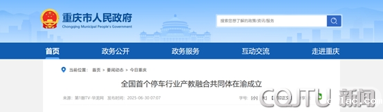 新闻来源:全国首个停车行业产教融合共同体在渝成立_重庆市人民政府网https://wap.cq.gov.cn/ywdt/jrcq/202506/t20250630_14757707.html