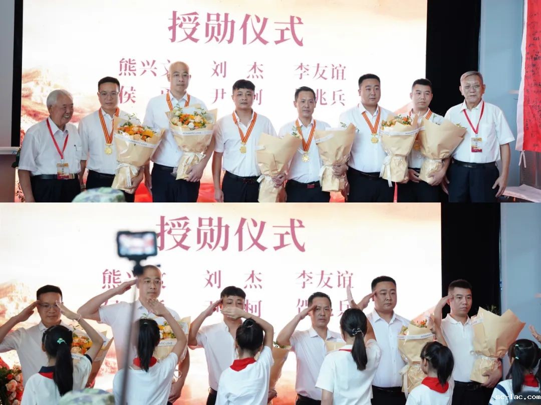 讲解员付雯静带领少先队员深情朗诵《川藏线赋》。孩子们纯净而坚定的声音,如同穿越时空的薪火。在庄重的授勋仪式上,六位荣光满身的退伍汽车运输老兵作为英雄代表接受致敬。谭戎生大校、穰玉武先生亲手为他们佩戴上致敬厅定制的纪念勋章,少先队员们则敬献鲜花。