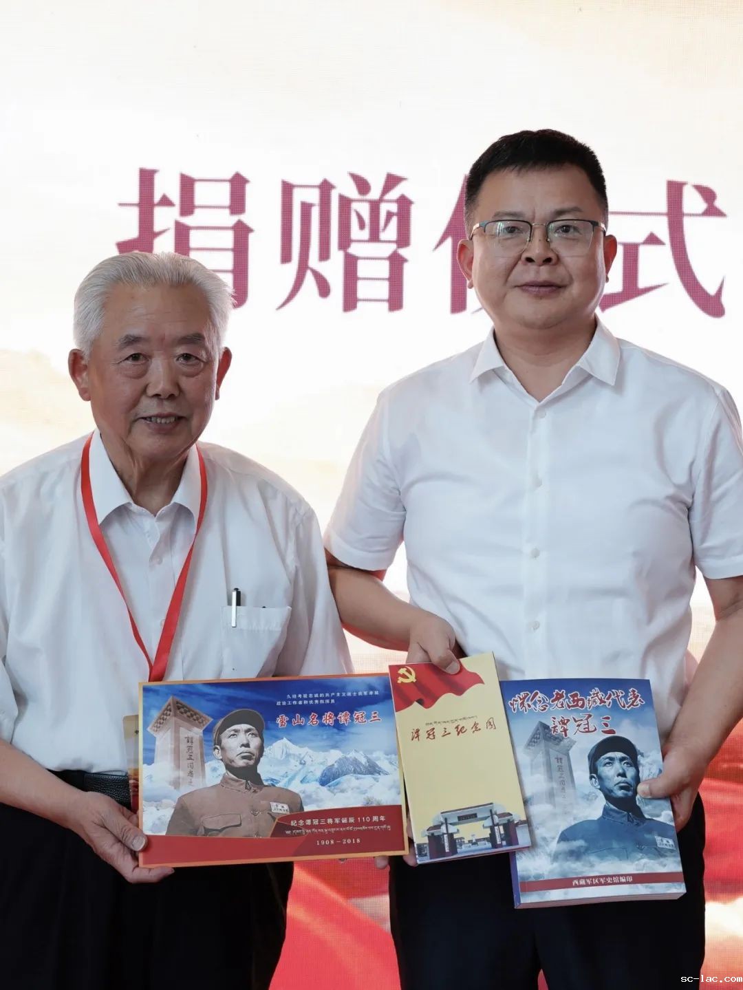 随后,谭戎生大校捐赠了关于父亲的珍贵书籍《怀念老西藏代表谭冠三》、《雪山名将谭冠三》;穰玉武先生捐赠了记录其父亲事迹的《穰明德的故事》、《穰明德的回忆》等宝贵史料,由雅安交建集团党委副书记张万清代表接收并颁发捐赠证书。