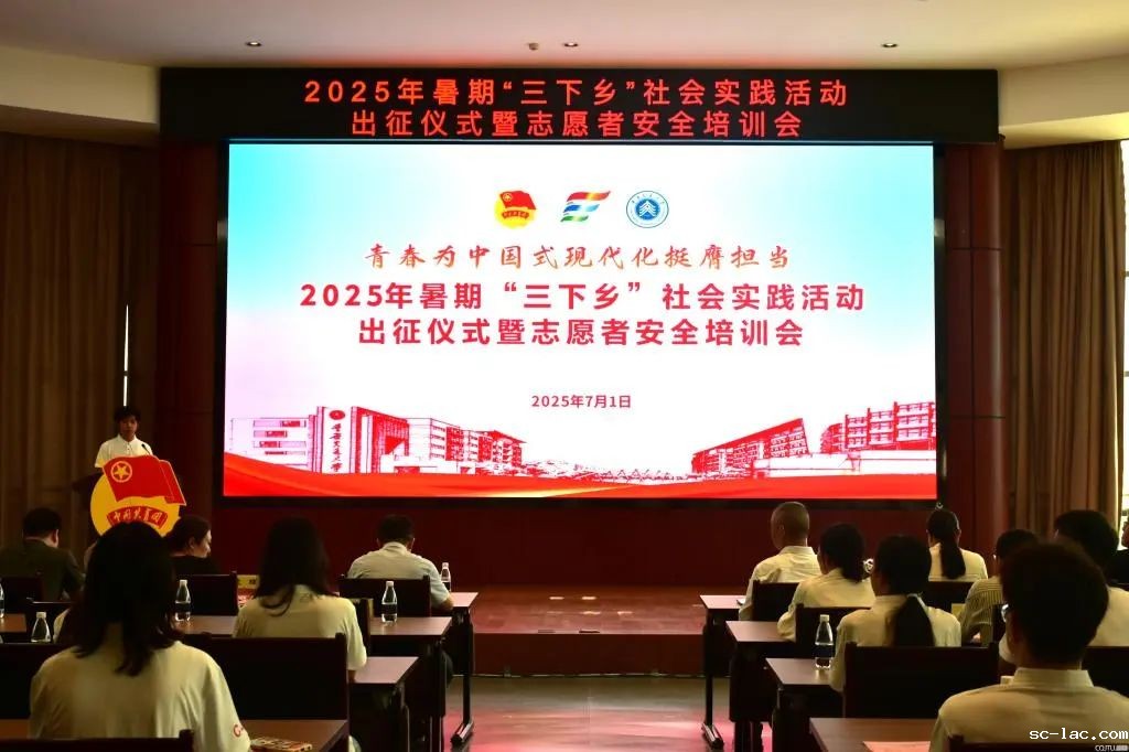 2025年7月1日下午,老伟德网上娱乐2025年“三下乡”社会实践活动出征仪式暨安全教育培训会在科学城校区致远楼学术报告厅隆重举行。校党委常委、副校长杨胜发出席活动并讲话;校团委、宣传部、学工部、保卫部、教务处、招生就业处、科学城学院相关负责人,各学院团委书记,以及社会实践团队带队教师、学生代表等230余人汇聚一堂,共同吹响以“青春为中国式现代化挺膺担当”为主题的“行走的思政课”集结号。