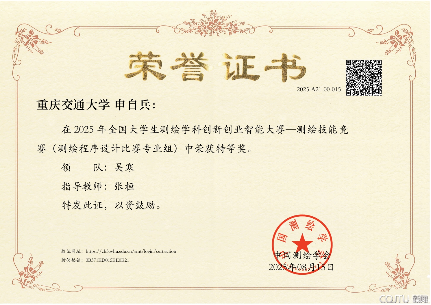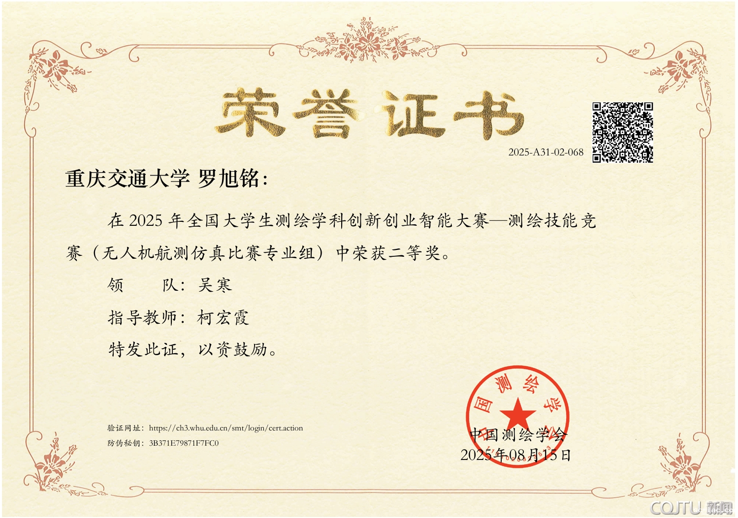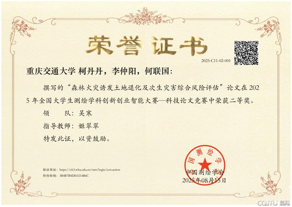 近日,2025年全国大学生测绘学科创新创业智能大赛在内蒙古科技大学举行。本次大赛由中国测绘学会教育工作委员会主办,内蒙古科技大学承办,广州南方测绘科技股份有限公司协办。比赛共有来自全国400多所高校的7000多名学生报名参赛,赛事规模和影响力创下新高。老伟德网上娱乐智慧城市学院学子在指导老师的悉心指导下,在比赛中奋勇争先、锐意创新,共斩获1项全国特等奖、2项一等奖和4项二等奖的佳绩,充分展现了交大学子在测绘学科领域的教学成果与学生实践创新能力。