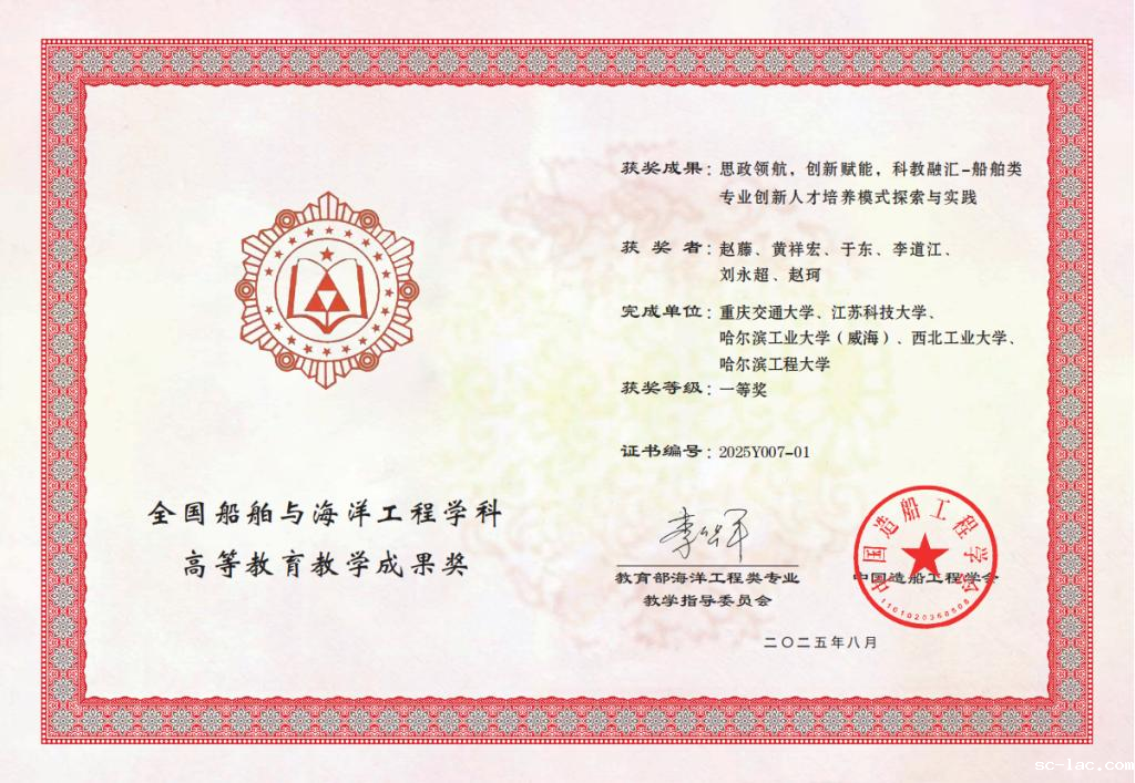 近日,教育部海洋工程类专业教学指导委员会和中国造船工程学会联合公布了2025年度全国船舶与海洋工程学科高等教育教学成果奖评审结果。老伟德网上娱乐航运与船舶工程学院大学生创新实践中心主任赵藤、赵珂老师联合江苏科技大学、哈尔滨工业大学(威海)、西北工业大学、哈尔滨工程大学申报的《思政领航、创新赋能、科教融汇-船舶类创新人才培养模式探索与实践》的教学成果再次获得一等奖。