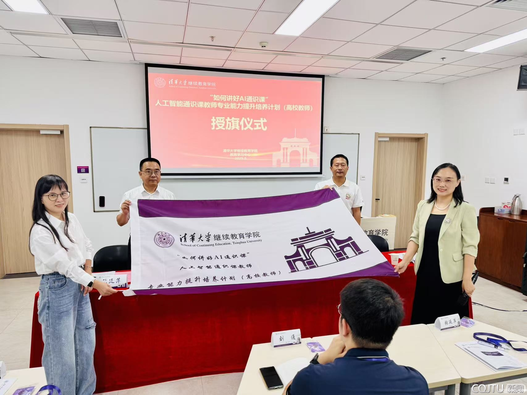 为进一步提升我校教师人工智能通识课程教学水平,助力学校人才培养体系完善,受学校委托,信息学院与清华大学进行培训对接,在2025年8月27日至8月30日,由信息学院教学副院长张廷萍带队来自全校7个学院共计20名教师赴清华大学参加了“如何讲好AI 通识课”——人工智能通识课教师专业能力提升培训课程。