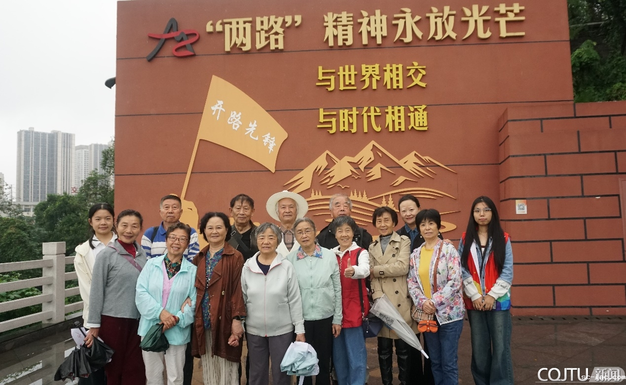 校友一行撑着各色雨伞前往“两路” 精神育人园。淅沥秋雨洗净草木, 讲解员温和而清晰的声音穿过雨幕。校友间互相搀扶的身影让这场参观满是温情;而飘落的雨丝仿佛重现了当年筑路时的艰辛,让“一不怕苦、二不怕死”的精神内核不再是文字符号,而是可以感知的艰难语境;而通过探寻历史细节、触摸岁月痕迹,他们又进一步将“两路”精神从史料中唤醒。这场雨并没有浇灭校友的热情,反而让 “两路” 精神里的坚守与无畏,更深刻地印在了每个人的心里。
