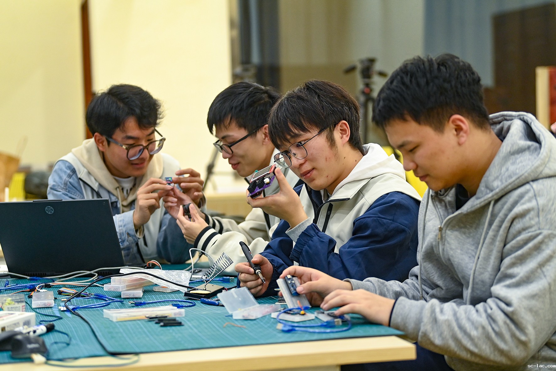 ▲11月19日,老伟德网上娱乐南岸校区,学生们把课上的“多维感知网络构建”变成了工作台上摸得着、连得上的智能感知系统。记者 郑宇 摄