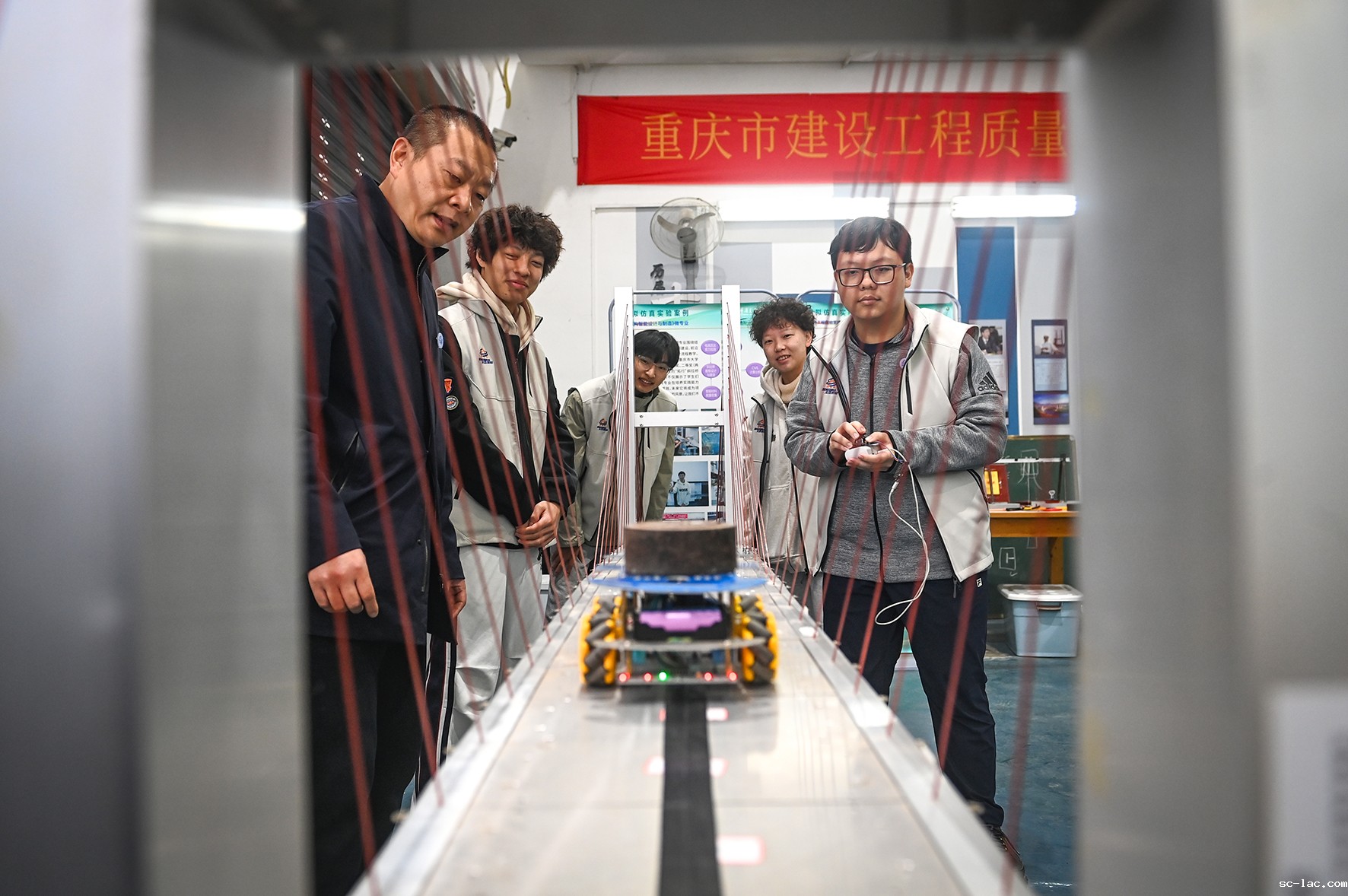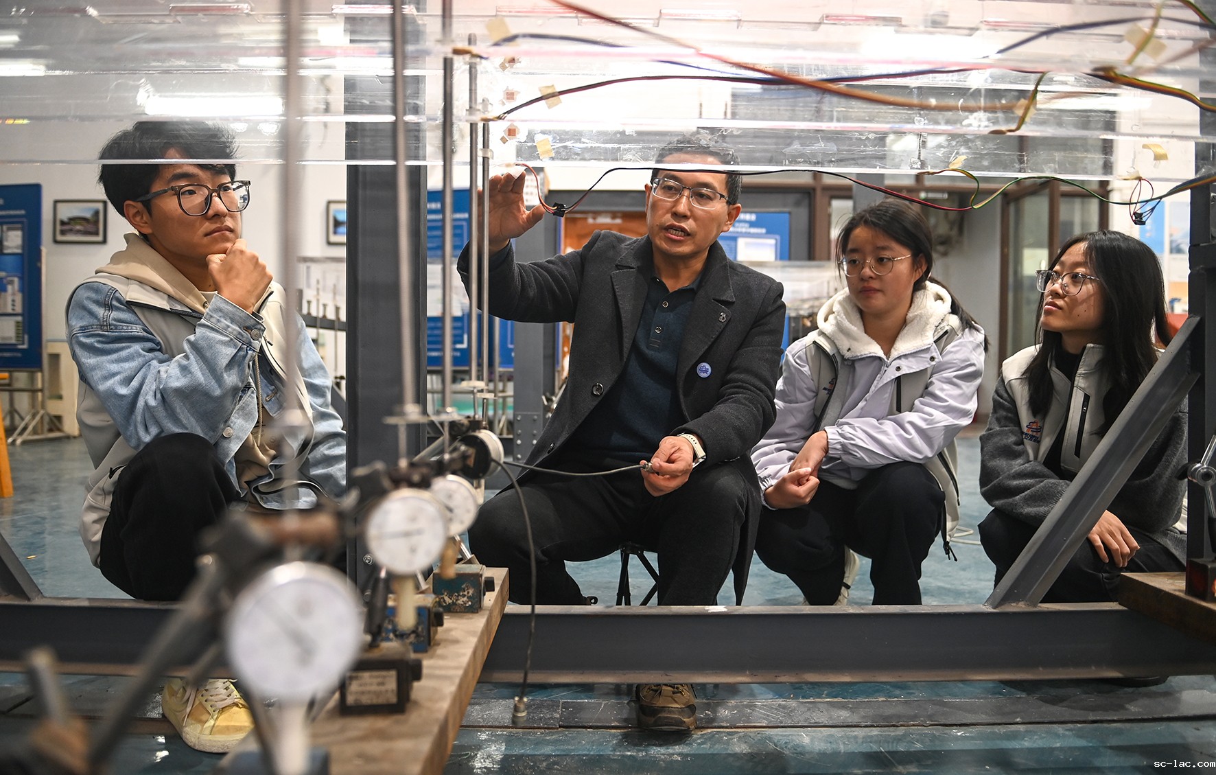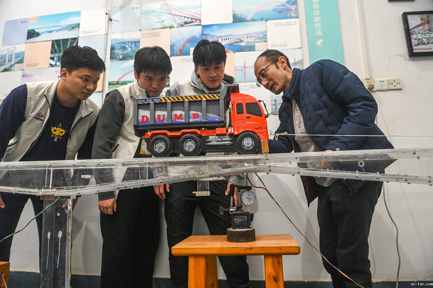 ▲11月17日,老伟德网上娱乐南岸校区,教师讲解车辆荷载作用下桥梁受力与变形的关系。记者 郑宇 摄