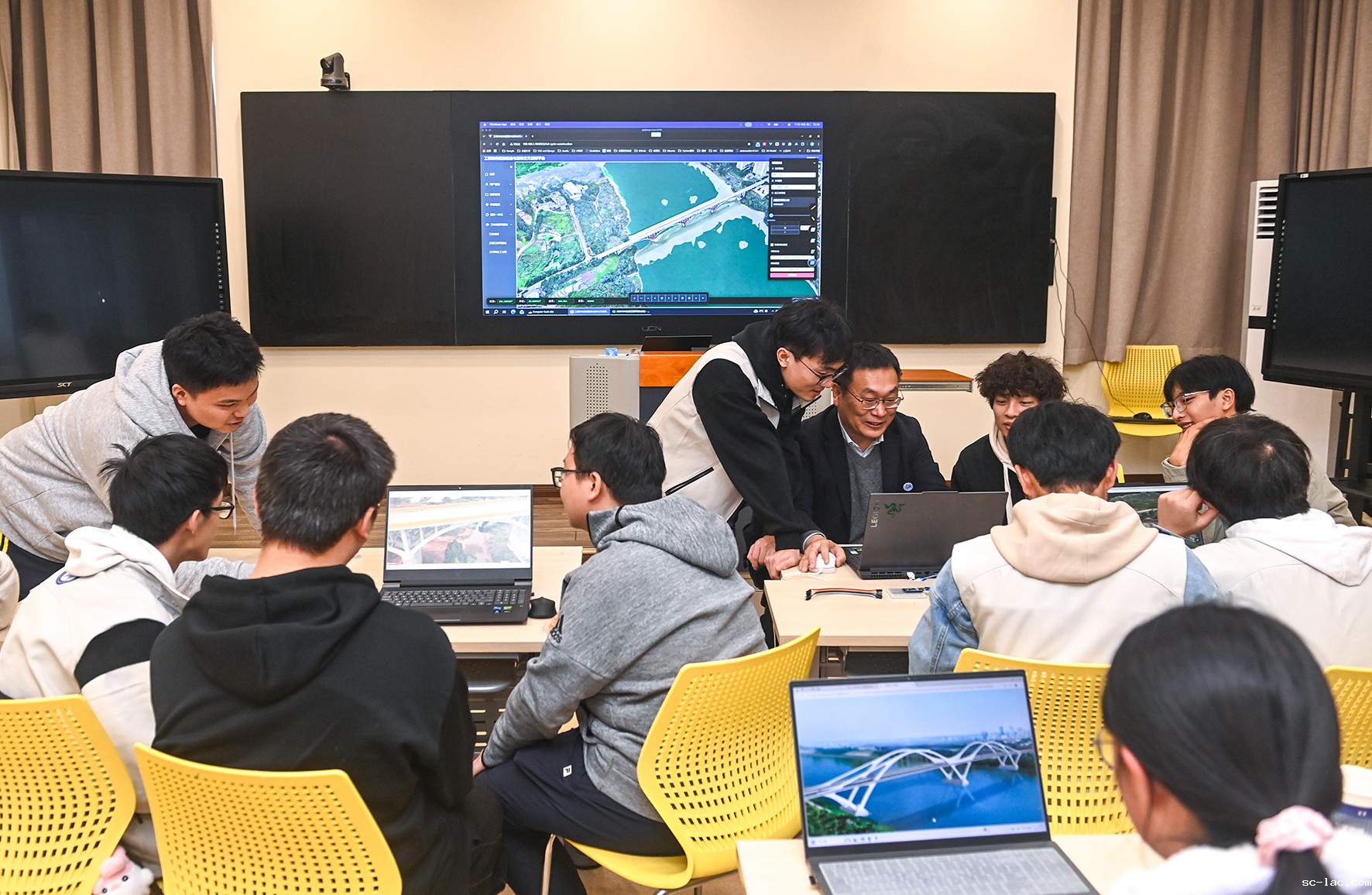 ▲11月18日,老伟德网上娱乐南岸校区,微专业的各组学生们正完成从航拍数据导入、建模参数设置到桥梁模型精度校核。记者 郑宇 摄